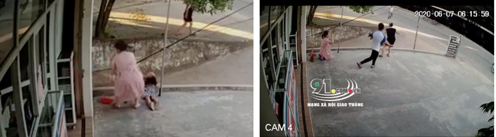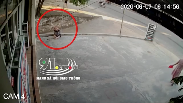 Theo đó, đoạn clip được trích xuất từ camera an ninh hiển thị thời gian khoảng 6h13 ngày 7/6. Thời điểm này, bé gái (khoảng 2 tuổi) chơi một mình tại sân, thấy đường dây điện sà xuống thấp nên đã dùng tay trái đu bám, tay phải đồng thời chạm vào cột sắt chống mái hiên nhà. Ngay lập tức, cháu bé đã ngã gục xuống sân, cơ thể bất động trong khi 2 tay vẫn không thể rời khỏi đường dây điện và cột sắt.