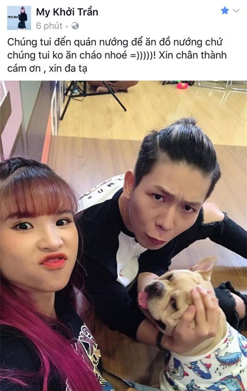 Bạn chụp ảnh thì làm ơn ghi đầy đủ giải thích như kiểu: 'Khởi My và Kelvin Khánh vào quán mình ăn nè' hay với mục đích dễ thương là vào quán nướng chứ đừng có khiến mọi người hiểu lầm như thế", cô nói.