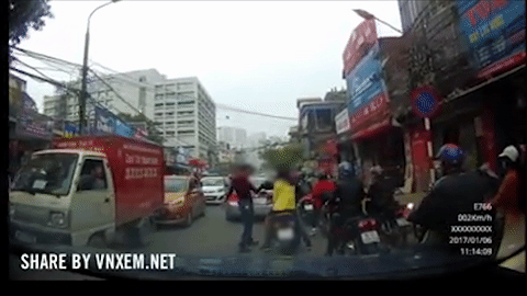 Được biết, clip do camera hành trình của chiếc ô tô quay lại vào khoảng 11h14 trưa ngày 6/1 trên đường Trường Chinh, Đống Đa, Hà Nội.