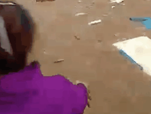 Hình ảnh người dân liều mình lao ra dòng nước lũ nhặt đồ. Ảnh cắt từ clip.