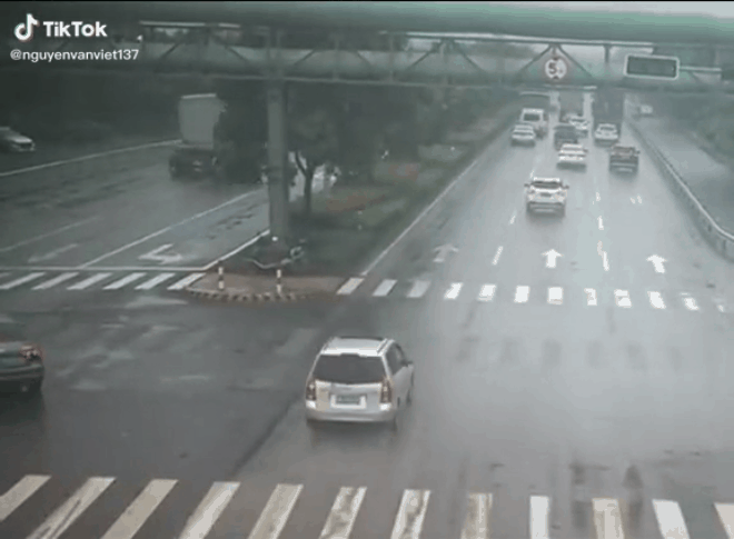 Ngay lúc đó, một ô tô con chạy tới. Tài xế kịp thời bẻ lái sang phải, tránh cú va chạm đáng tiếc. Màn xử lý tài tình của người này đang được dân mạng khen ngợi.