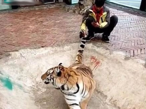 Hành động đối đãi "khác người" với chú hổ 2 tuổi của nam thanh niên đã khiến dư luận bất bình.
