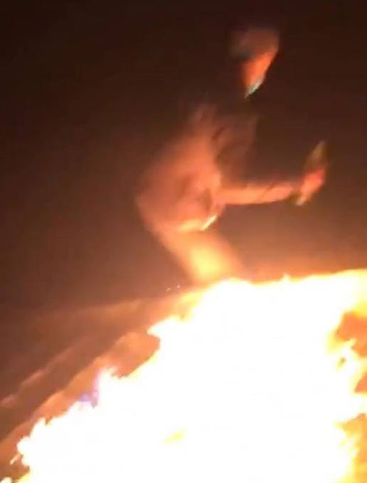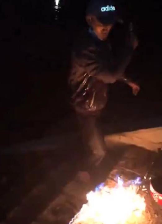 Qua quan sát hình ảnh ở clip có thể thấy rằng nam thanh niên đã mặc quần áo rất dày, sau đó tẩm xăng rồi tự tay châm lửa để thực hiện lời hứa của mình.