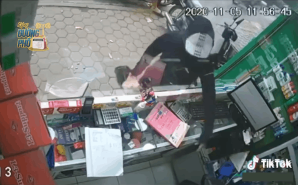Clip ghi lại màn trộm điện thoại trong một hiệu thuốc. Một thanh niên đội mũ bảo hiểm, bịt khẩu trang kín mít giả vờ vào kể bệnh. Người này đã mua được một túi thuốc và tiếp tục đứng chờ mua thêm.