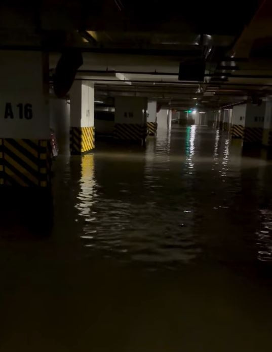 “Tôi đang đi làm nên không để ý nhiều, vì trước đây khu này chưa từng xảy ra ngập. Đến chiều, BQL tiếp tục gọi báo hầm đã ngập và cắt điện, tôi mới vội vã trở về. Khi xuống kiểm tra, tôi thấy nước từ giếng trời chảy dồn xuống các tầng hầm. Hiện B1, B2 đã rút nước, riêng B3 vẫn ngập sâu”, chị Ng. kể.