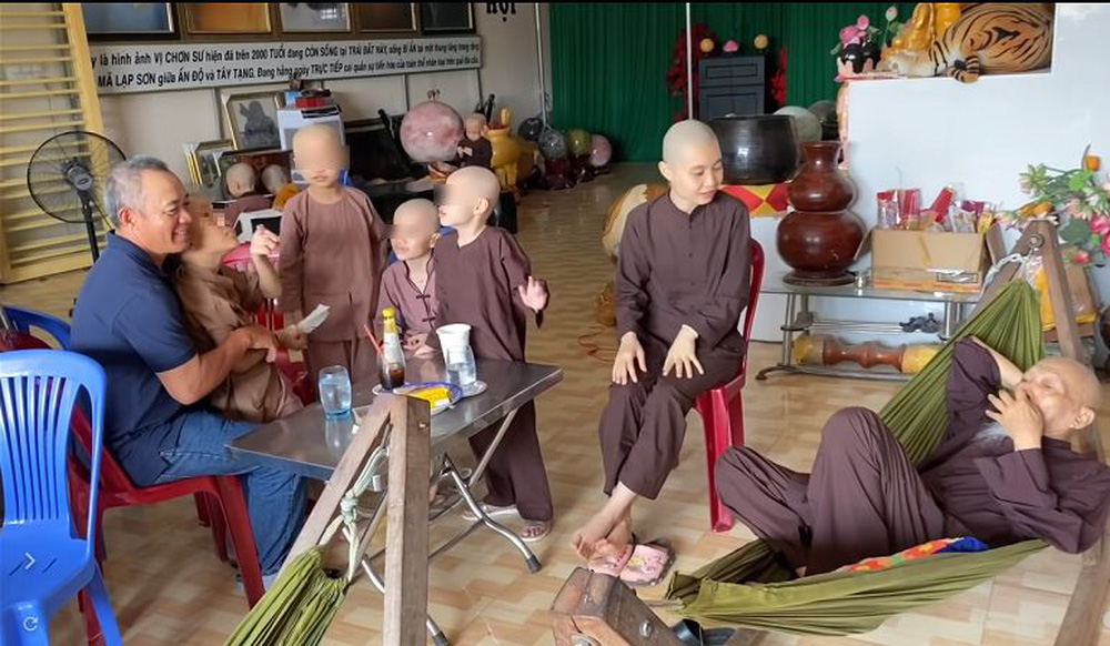Một đoạn clip mới đây về "nữ tu" này được dân mạng "soi" lại và đặt ra nhiều thắc mắc. Trong clip, cha của Ngọc Xuân đã tới Long An thăm Thiền am. Khi đó, ông Lê Tùng Vân ra võng ngồi tiếp, có Ngọc Xuân cùng các chú tiểu khác đứng vây quanh.