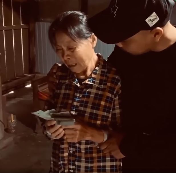 Trong video, khi nhận được số tiền từ mạnh thường quân, người bà đã ngoài ngũ tuần liên tục khóc và lau nước mắt. Khi được hỏi lý do vì sao, bà trả lời: 'Bà cầm đồng tiền của các con, bà cảm động. Giờ lụt lội cả nước, ở mô cũng khó khăn. Dù các con đến, biếu ông bà gì. Ông bà rất là cảm ơn'.