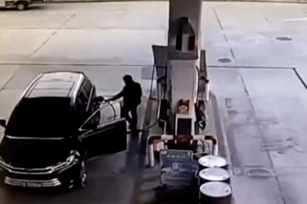 Sau khi đâm gục cột bơm xăng, lửa lập tức bùng lên dữ dội. Nhờ hệ thống an toàn ở cột bơm hoạt động tốt nên lửa đã tắt trước khi kịp lan ra xung quanh.