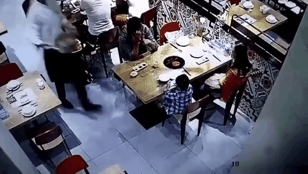 Qua những hình ảnh được camera an ninh ghi lại, có thể thấy nam nhân viên nhà hàng lẩu đang bê nồi nước nóng vào bàn cho thực khách thì bất ngờ bị trượt chân do sàn quá trơn. Chàng trai trẻ loạng choạng, không thể giữ được chiếc nồi trên tay, khiến cho cả nồi nước rơi xuống mặt bàn và văng tung tóe vào mặt bé trai đang ngồi cạnh đó. Thậm chí chiếc nồi còn trôi về phía tay của bé trai đang đặt trên mặt bàn.