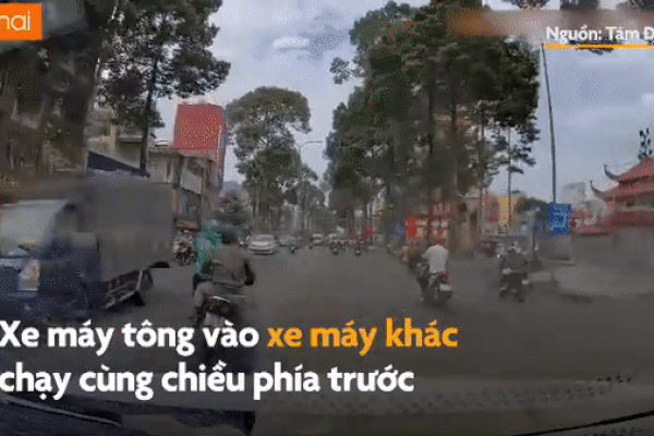 Đoạn clip ghi lại cảnh va chạm trên một con phố khá đông đúc. Chiếc ô tô mang biển số xanh được cho là xảy ra va chạm với chiếc xe máy chở 2 nam thanh niên.