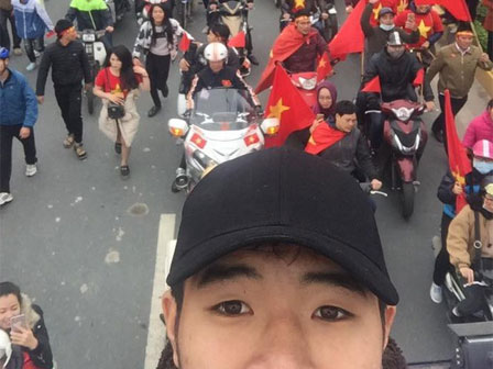 Đức Chinh phát trực tiếp cảnh người hâm mộ đón U23 Việt Nam trên Facebook cá nhân