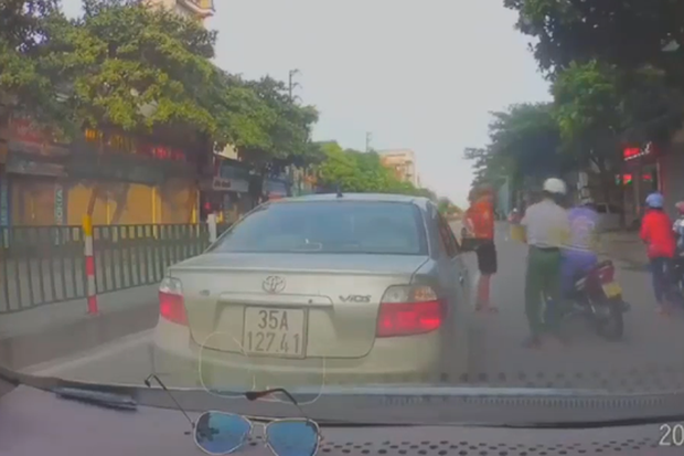 Theo đó, sự việc được ghi nhận vào sáng cùng ngày, chiếc xe con mang BKS Ninh Bình đang chạy trên đường bỗng dưng phanh gấp, dừng đứng lại giữa đường. Sau đó, nam tài xế cùng một người khác hớt hải xuống xe, chạy ra nhặt những tờ tiền rơi vãi trên đường, trong khi chiếc xe vẫn được đỗ nguyên ở làn giữa. Trong khi đó, tài xế ô tô chạy phía sau phải phanh "cháy đường" mới có thể tránh được va chạm.