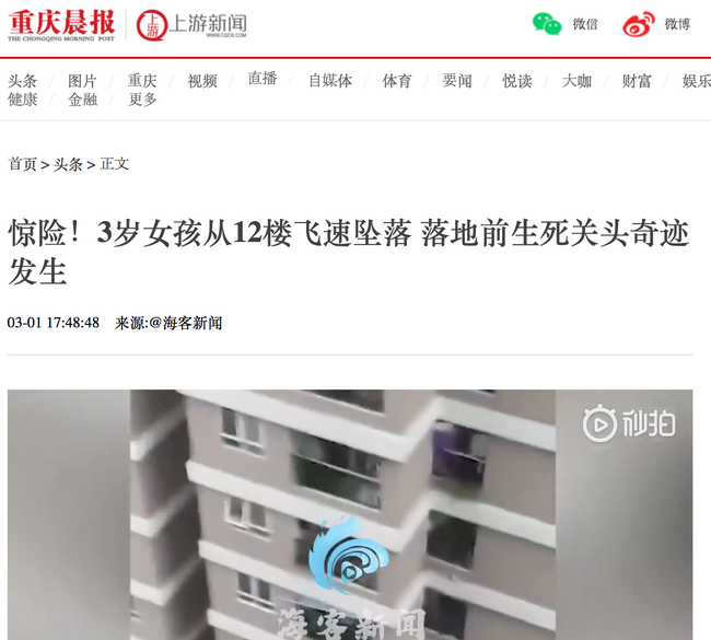 'Một sự việc giống như phim đã xảy ra tại Hà Nội, Việt Nam khi một người tài xế đi ngang qua đã cứu một em bé 3 tuổi bị rơi từ chung cư cao tầng xuống.