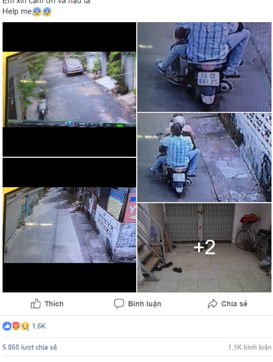 Theo nội dung lời kêu cứu mà cô gái đăng tải: "Mọi người ơi, nhà mình vừa mới bị cạy cửa lấy mất 3 cái xe. Air Blade 2016 màu trắng BKS 47E1-245.80. Vision 2016 màu trắng BKS 47E1-212.11. Atila màu đỏ BKS 47E1-085.49. Địa chỉ nhà mình ở 125/48/38 Lê Đức thọ, phường 17, Quận Gò Vấp, TP.HCM. Mất vào lúc khoảng 11h30 ngày 21/3.