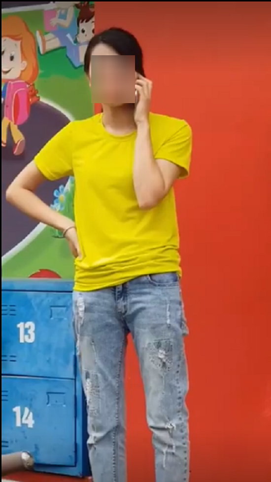 Cô gái vừa khóc vừa gọi điện về cho người thân sau sự việc.