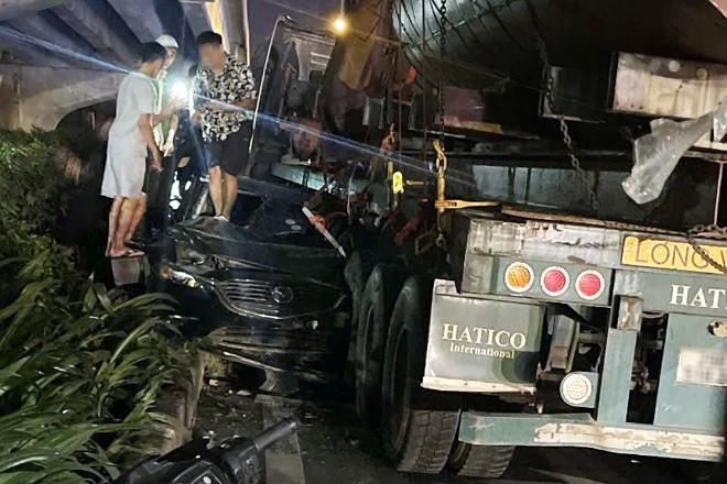 Sau khi tông vào xe máy, xe đầu kéo container tiếp tục va chạm với ô tô 7 chỗ mang BKS 48D-005.47 lưu thông phía trước.