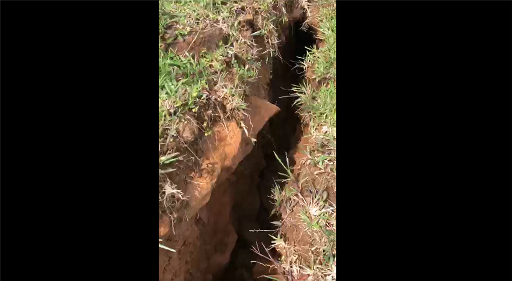 Theo đó, vết nứt dài khoảng 200m, có chiều rộng khoảng 20 - 50 cm. Dưới những vết nứt là khoảng không sâu hoắm.