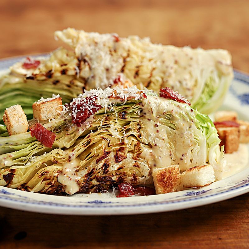 Món salad bắp cải nướng hoàn thành mới nhìn thôi đã thấy hấp dẫn và ngon mắt vô cùng. Bắp cải nướng cho đến khi các cạnh lá vàng nâu vẫn giữ được độ giòn ngọt, tươi mát. Phần rau bắp cải được "tắm" đẫm trong sốt caesar thơm ngon, đậm đà. Bên trên là những miếng bánh mì nướng giòn tan và thịt xông khói thơm mềm tăng thêm hương vị. Đây là món salad mà bạn không nên bỏ lỡ bởi cả hương vị lẫn công dụng tuyệt vời đối với sức khỏe!