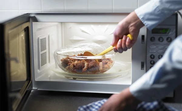 Nhiều gia đình Việt có thói quen dùng màng bọc thực phẩm bọc thức ăn, sau đó đem quay trong lò vi sóng để làm nóng thức ăn.