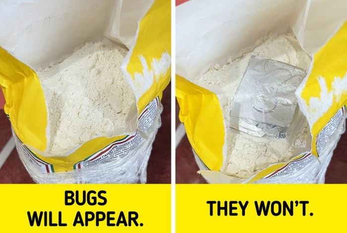 3. Để ngăn bọ “đột nhập” vào bột mì, bạn hãy cho một miếng kẹo cao su bạc hà có lót giấy bạc vào bên trong túi bột mì.