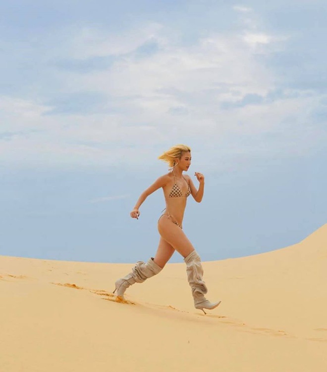 Một khoảnh khắc nóng bỏng của Quỳnh Anh Shyn chụp cùng bikini trên đồi cát nắng.