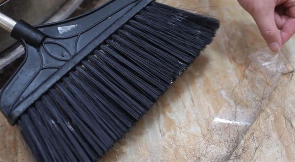 Dùng chổi này quét nhà tắm (lúc khô ráo, không có nước) là có thể thu gọn được hết các sợi tóc rụng vương vãi trên nền.