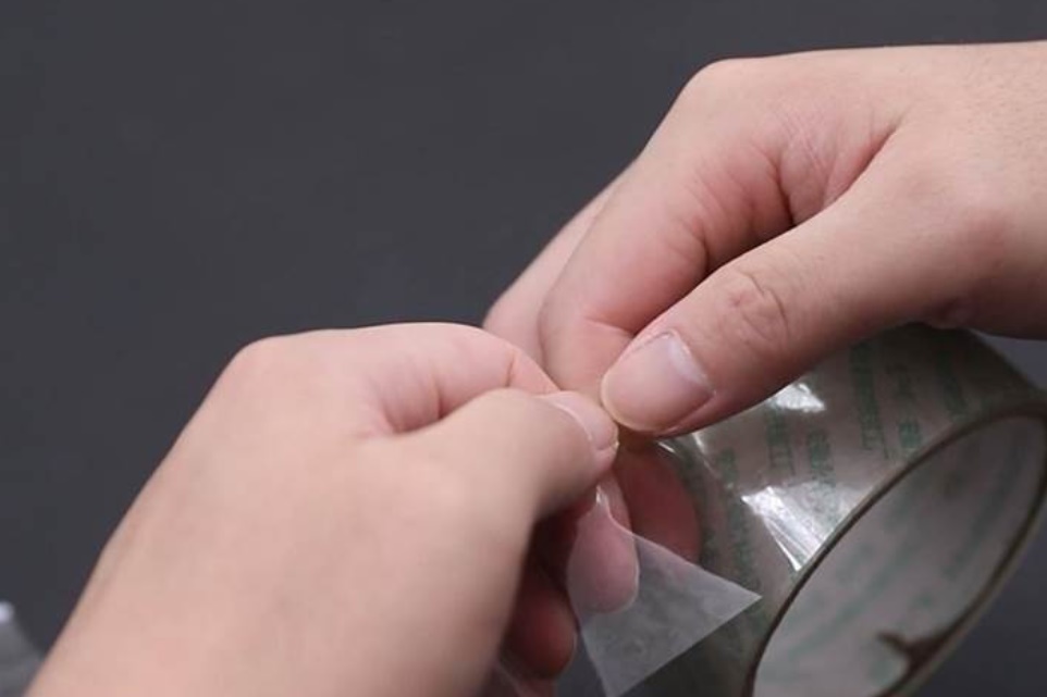 Đầu tiên, bạn kéo đoạn băng dính ra, hai ngón trỏ áp sát vào nhau.