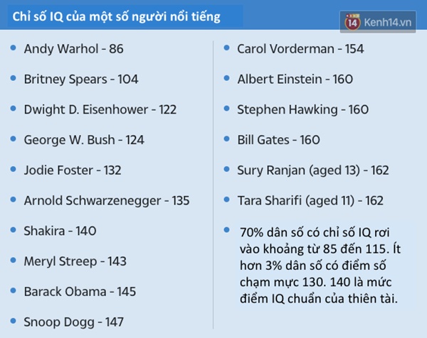 Tara Sharifi, cô bé 11 tuổi người Iran hiện đang theo học tại trường trung học Aylesbury, nước Anh, mới đây đã làm bài kiểm tra IQ của Oxford và đạt tới 162 điểm. Điểm số này cao hơn điểm IQ chuẩn của thiên tài tới 22 điểm, vượt cả IQ của nhà vật lý lỗi lạc Albert Einstein và nhà vũ trụ học nổi tiếng Stephen Hawking - 2 thiên tài có chỉ số thông minh là 160.