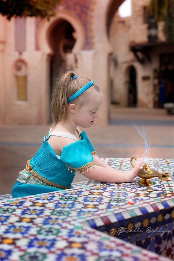 Giselle – một cô bé 4 tuổi bị bệnh Down– đã biến thành những nàng công chúa đáng yêu của Disney qua ống kính của người mẹ.