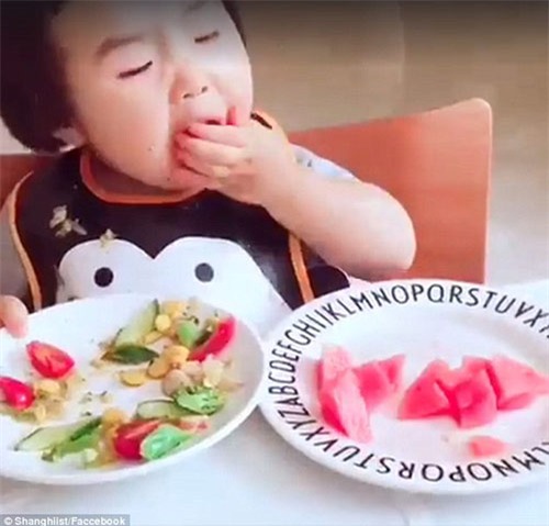 clip ăn uống của Tiểu Man được mẹ đăng tải nhanh chóng xuất hiện dày đặc