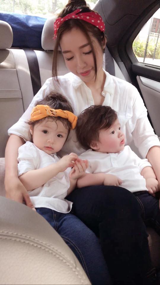Mẹ Hồng Nhung thường xuyên chia sẻ hình ảnh 2 con trên trang cá nhân.