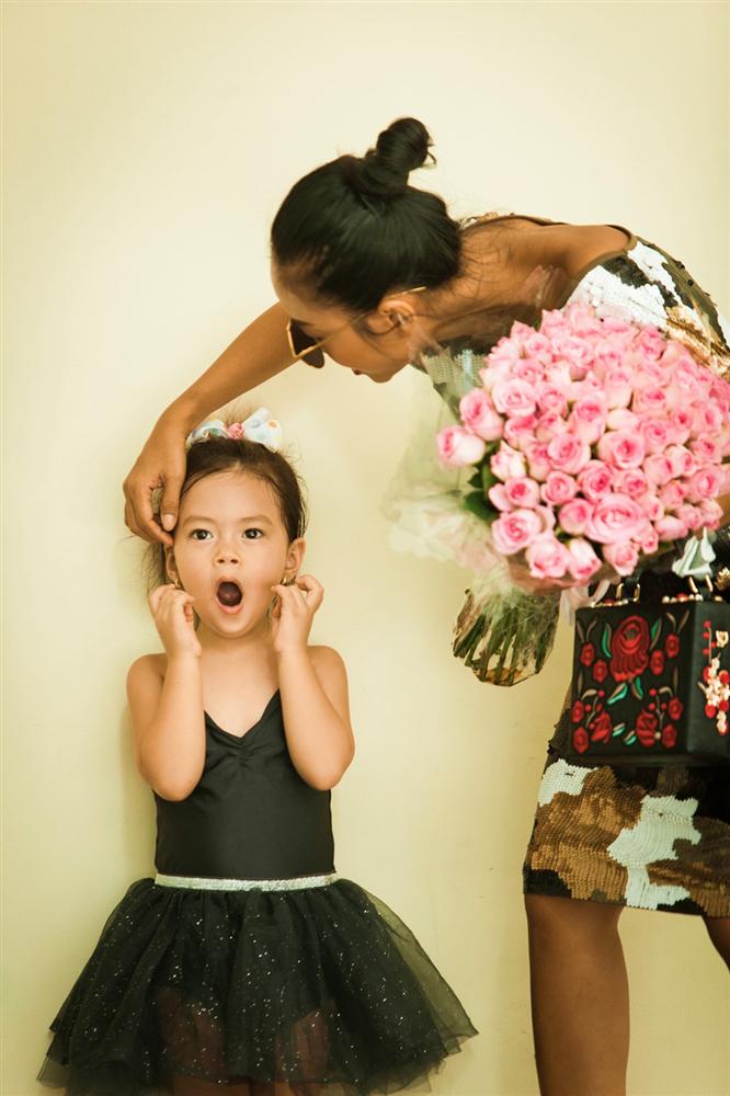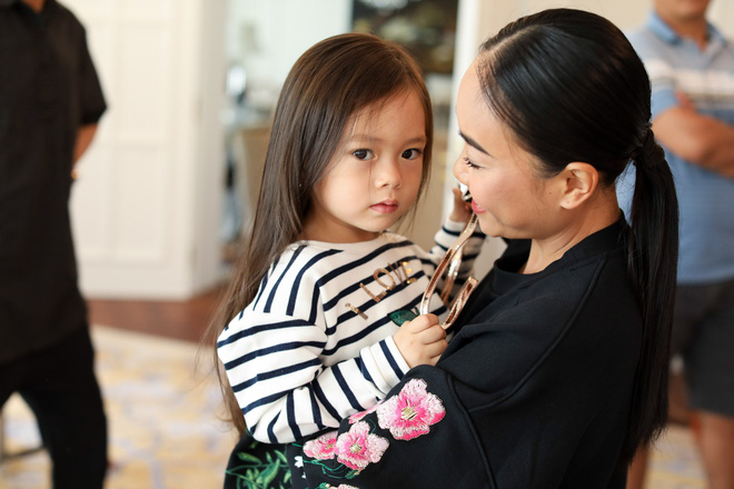 Cô con gái Tép tự tin tham gia sự kiện và chụp hình trước ống kính máy ảnh cùng mẹ.