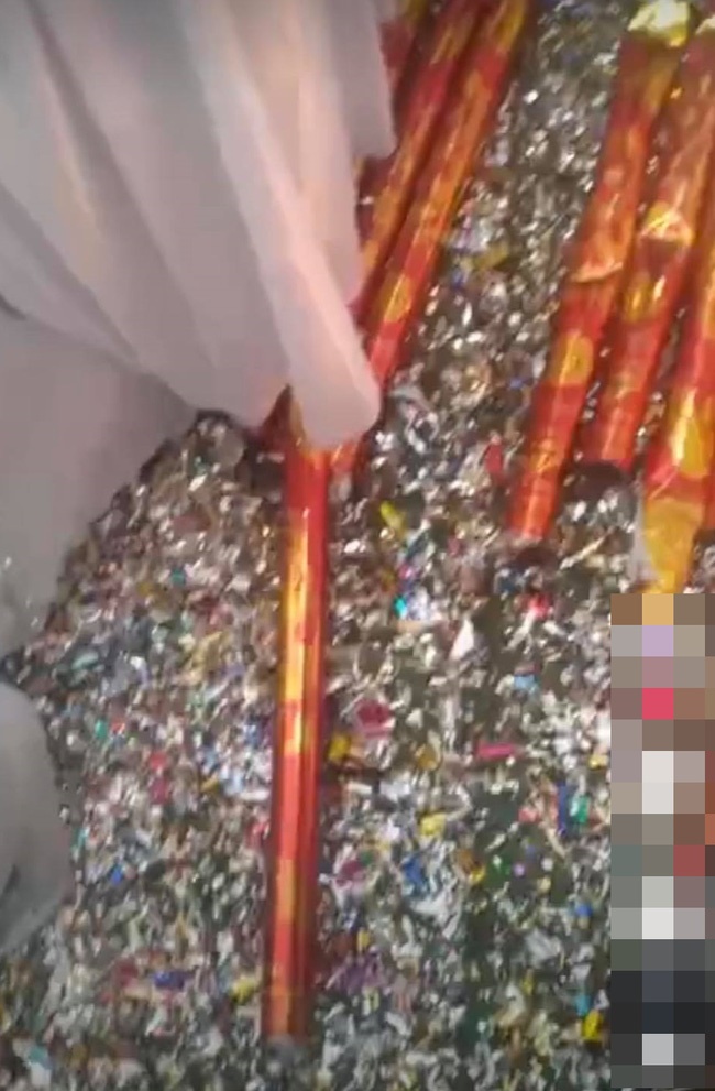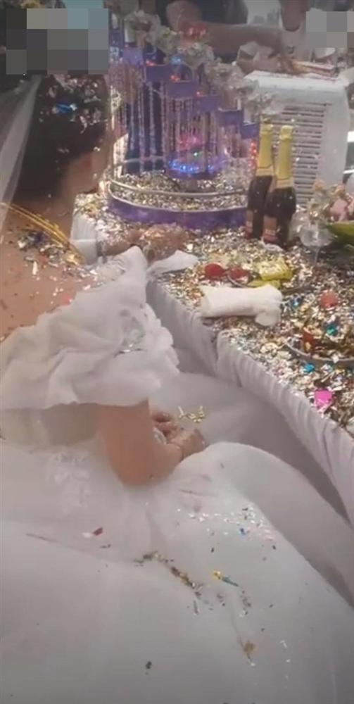 Khi đó, nhiều thanh niên bắn pháo bông chào mừng. Tuy nhiên, số lượng pháo được bắn ra quá lớn khiến cho đầu tóc cô dâu chú rể, bàn làm lễ, bánh kem hay cốc đựng rượu vang đều tràn ngập những mảnh giấy.