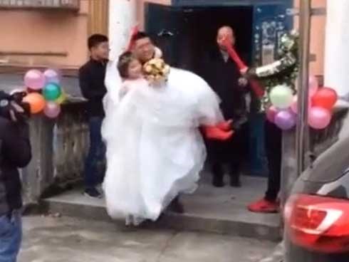 Bi kịch khi chú rể không thể bế nổi cô dâu trong đám cưới
