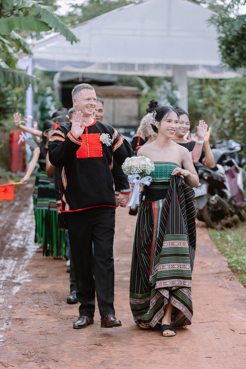 Đám cưới diễn ra theo đúng phong tục truyền thống của người Ê Đê. Mẹ Hương đặc biệt tặng con rể và sui gia trang phục truyền thống của đồng bào mình. Trong hôn lễ, họ hào hứng mặc trang phục đó và luôn miệng khen đẹp.