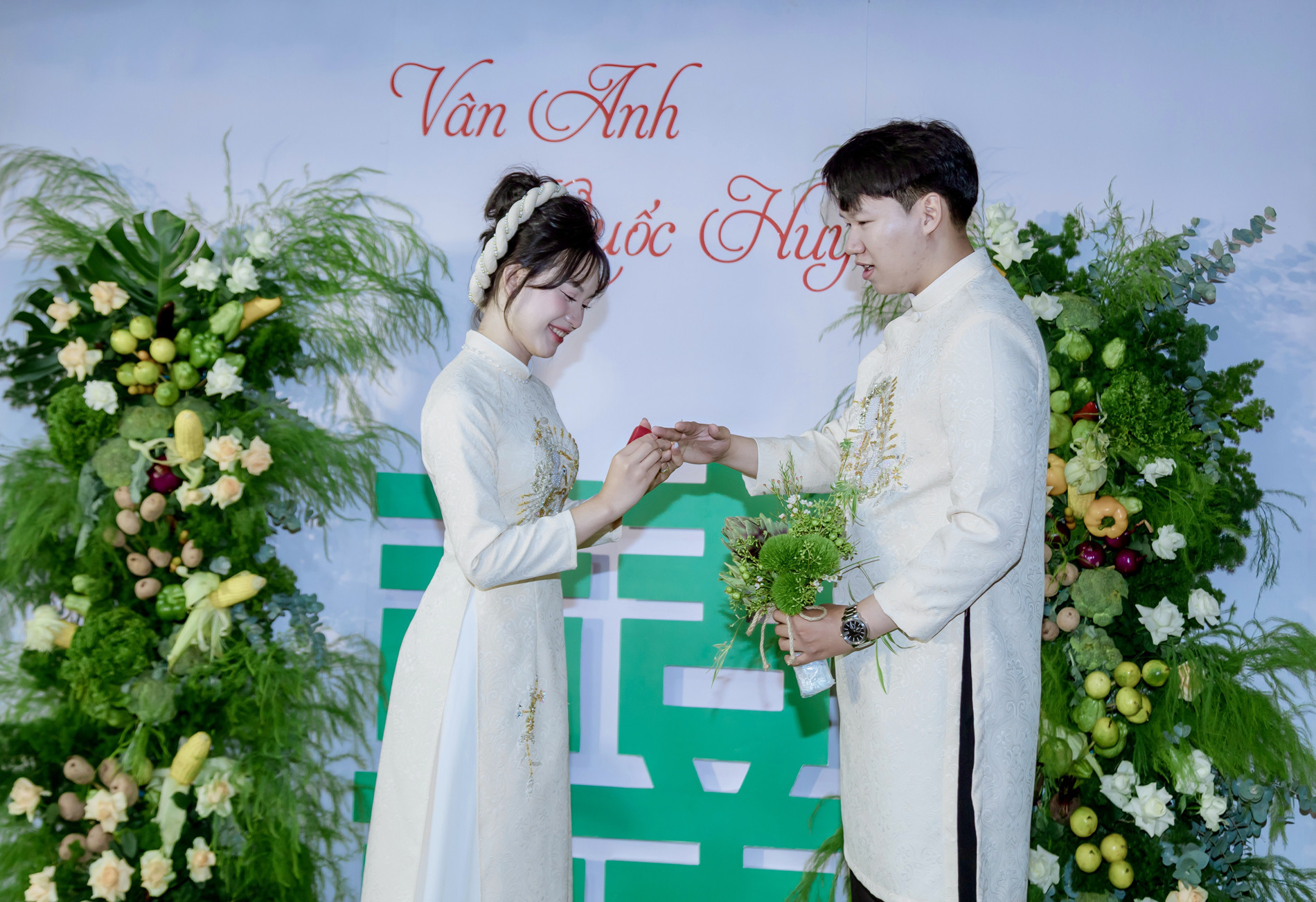 Chia sẻ với PV VietNamNet, Vân Anh cho biết, vì gia đình “3 đời làm nông”, bố mẹ chồng lại là chủ một vựa rau lớn nên cô muốn có một đám cưới mang dấu ấn đặc biệt, vừa độc đáo, sáng tạo, vừa thể hiện được truyền thống của gia đình.