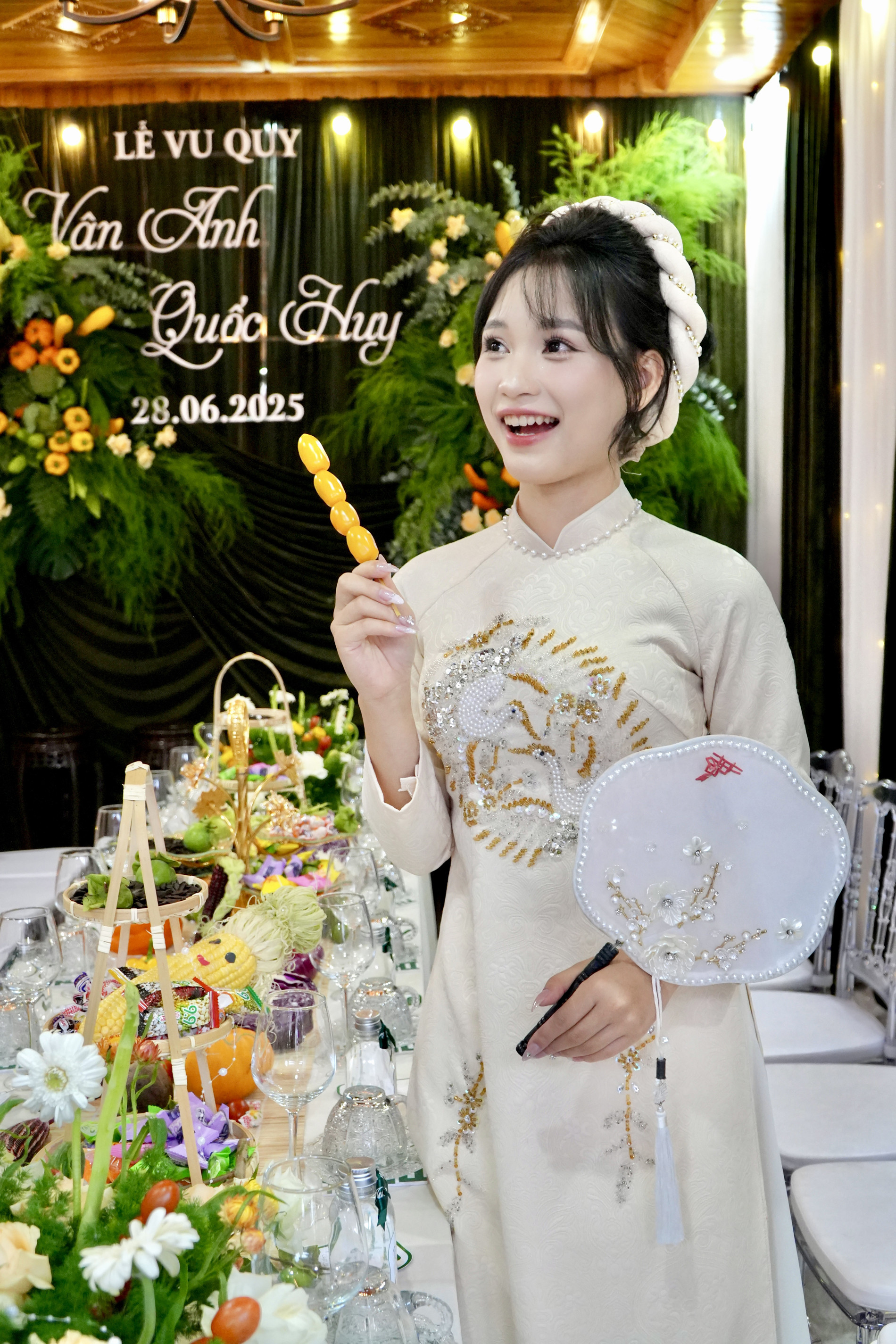 “Hơn 1 tháng sau đám cưới, gia đình mình và họ hàng, hàng xóm mới sử dụng hết số lượng nông sản đã dùng để trang trí cho lễ thành hôn”, Vân Anh hài hước nói.