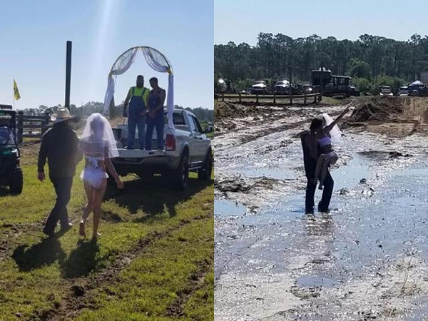 Đám cưới đặc biệt này diễn ra hôm 23/3 tại công viên Redneck Mud thuộc thành phố Punta Gorda, bang Florida, Mỹ. Cô dâu Ahrielle Biddle và chú rể Jeremy đã quyết định biến đám cưới của mình trở thành một ngày thật khác biệt và nó đã lan truyền nhanh chóng trên mạng xã hội.