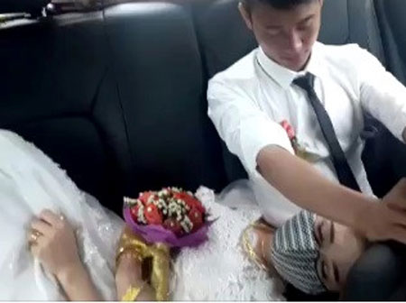 Cô dâu tâm sự thực chất chuyện cũng không có gì, chỉ do quãng đường đón dâu từ Nghệ An về Hà Tĩnh (quê chồng) cách nhau hơn 100 km và mất gần 3 tiếng di chuyển. Trên đường đi, cô thấy đau đầu và mệt vì say xe nên phải nằm suốt.