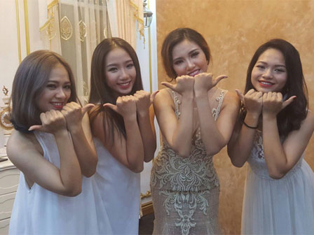 Hôm ấy các chị em cùng trong nhóm nhảy và cũng là các chị em rất thân thiết với mình đều mong muốn có mặt trong bộ ảnh cưới của mình, nên mình đã sắp xếp để các bạn cùng đến và chụp ảnh tại phim trường với hai vợ chồng.