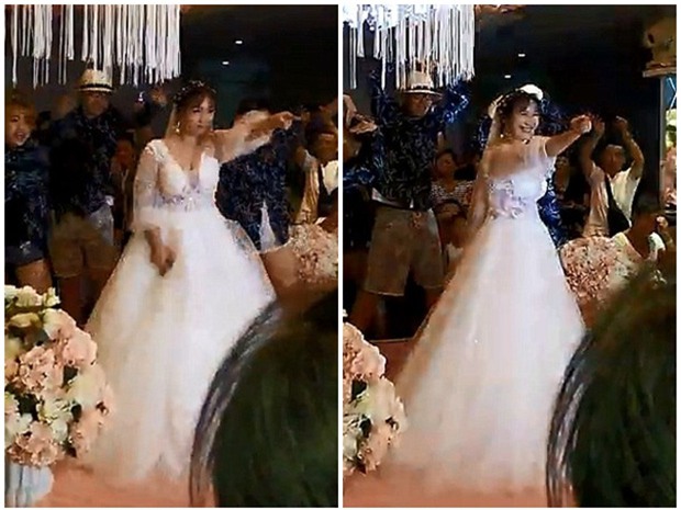 Giữa buổi hôn lễ, cô dâu trẻ chẳng ngần ngại chạy lên sân khấu để cùng những người bạn xung quanh nhảy street dance theo nền nhạc của ca khúc Come On Over, All I Want Is You (Hãy tới đây, anh là tất cả những gì em muốn) do nữ ca sĩ nổi tiếng Christina Aguilera thể hiện.