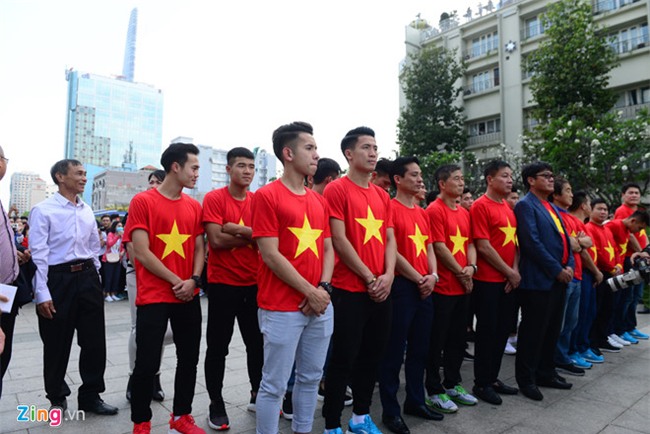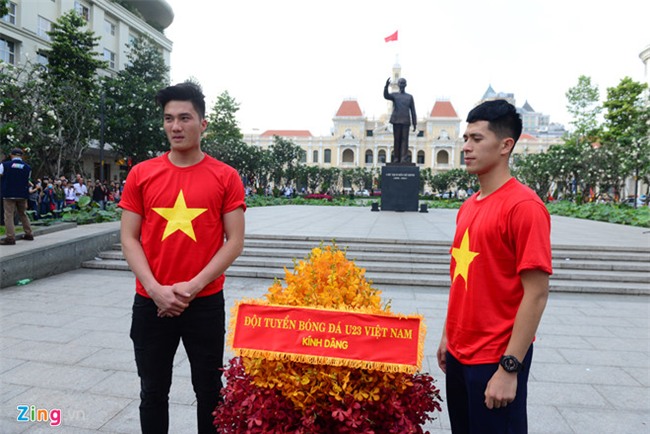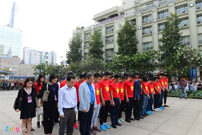 15h00, U23 Việt Nam rời khách sạn đến dâng hương tại tượng đài Bác Hồ trên phố đi bộ Nguyễn Huệ và chụp ảnh lưu niệm.