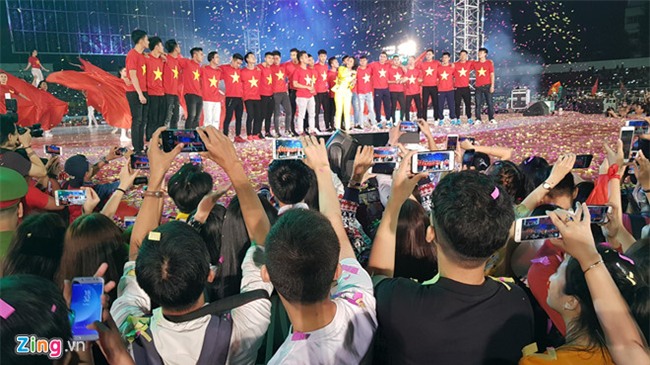 Ban tổ chức gala ở sân Thống Nhất cho biết có khoảng hơn 25.000 người hâm mộ đến tham dự buổi giao lưu - mừng công cùng đội tuyển U23 Việt Nam. Ảnh: Trương Khởi.