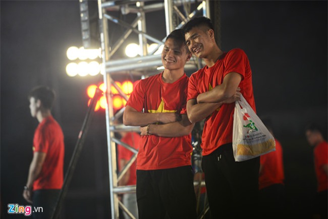Nhiều khả năng buổi mừng công và giao lưu tại TP.HCM là sự kiện cuối cùng của U23 Việt Nam trước khi các tuyển thủ trở về câu lạc bộ, chuẩn bị cho mùa giải V.League 2018. Có khoảng 20 trong 23 cầu thủ dự vòng chung kết U23 châu Á 2018 tham dự buổi giao lưu. Trong đó, đáng chú ý là thủ môn Bùi Tiến Dũng có thể vắng mặt. Ảnh: Nguyễn Đăng.