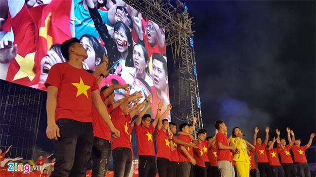 Ban tổ chức dựng sân khấu lớn ở sân vận động Thống Nhất, TP.HCM. Người hâm mộ có thể giao lưu với các thành viên của U23 Việt Nam.