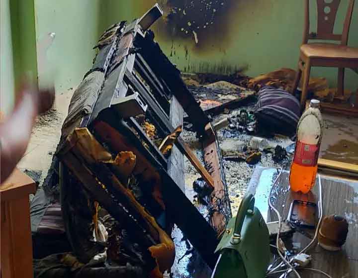 Đám cháy đã thiêu rụi một phần diện tích căn nhà cùng vật dụng sinh hoạt gia đình.