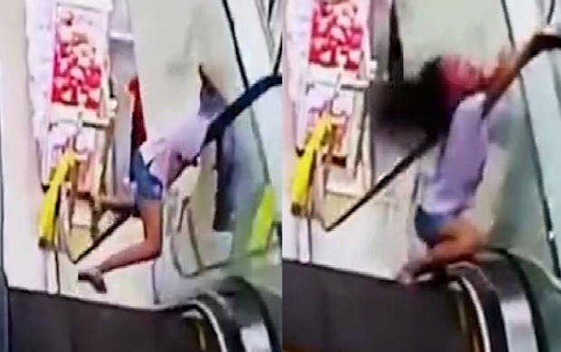 Do thờ ơ không để ý, cô gái bị kẹt đầu giữa thang cuốn và tường của trung tâm thương mại khiến nhiều người thót tim.