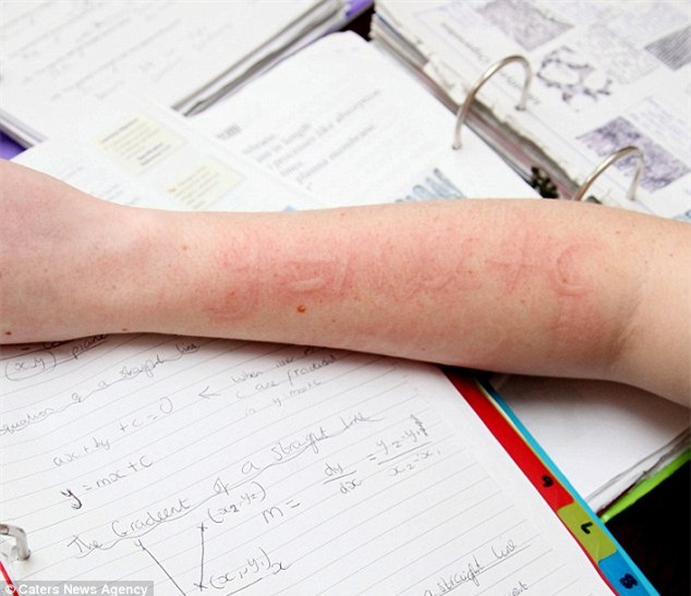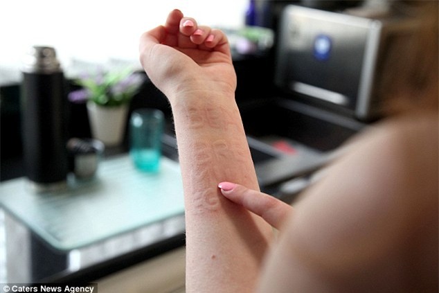 Pearce cũng cho biết, chỉ cần dùng ngón tay viết lên da cũng để lại những vết phát ban. “Nó khá tiện. Tôi không cần phải dùng bút. Và tôi có thể viết bất kỳ thông tin gì trên da, chúng sẽ tồn tại khoảng 30 phút, đủ để tôi nhớ”.