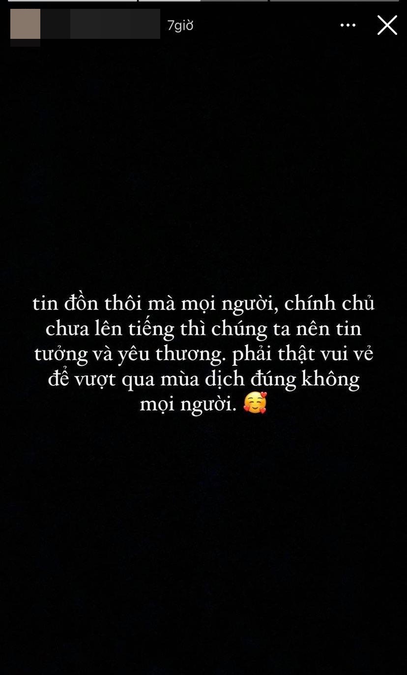 Mới đây, T.Q. đã bất ngờ có động thái chia sẻ trên trang cá nhân, được cho là liên quan tới sự việc của Jack. Cô viết: "Tin đồn thôi mà mọi người. Chính chủ chưa lên tiếng thì chúng ta nên tin tưởng và yêu thương. Phải thật vui vẻ để vượt qua mùa dịch đúng không mọi người".