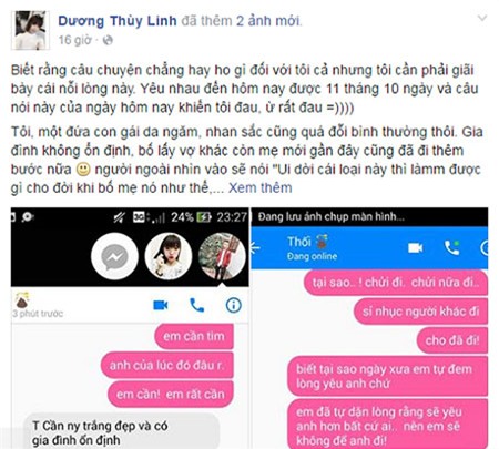 Nhưng biến cố bắt đầu xảy ra, khi chàng trai gửi tin nhắn vào hộp thư của cô với nội dung “tôi cần người yêu trắng đẹp và gia đình ổn định, xin lỗi vì quá phũ…”. Mặc dù bị người yêu phụ tình, nhưng Thùy Linh vẫn bênh vực và xin lỗi đến chàng trai.